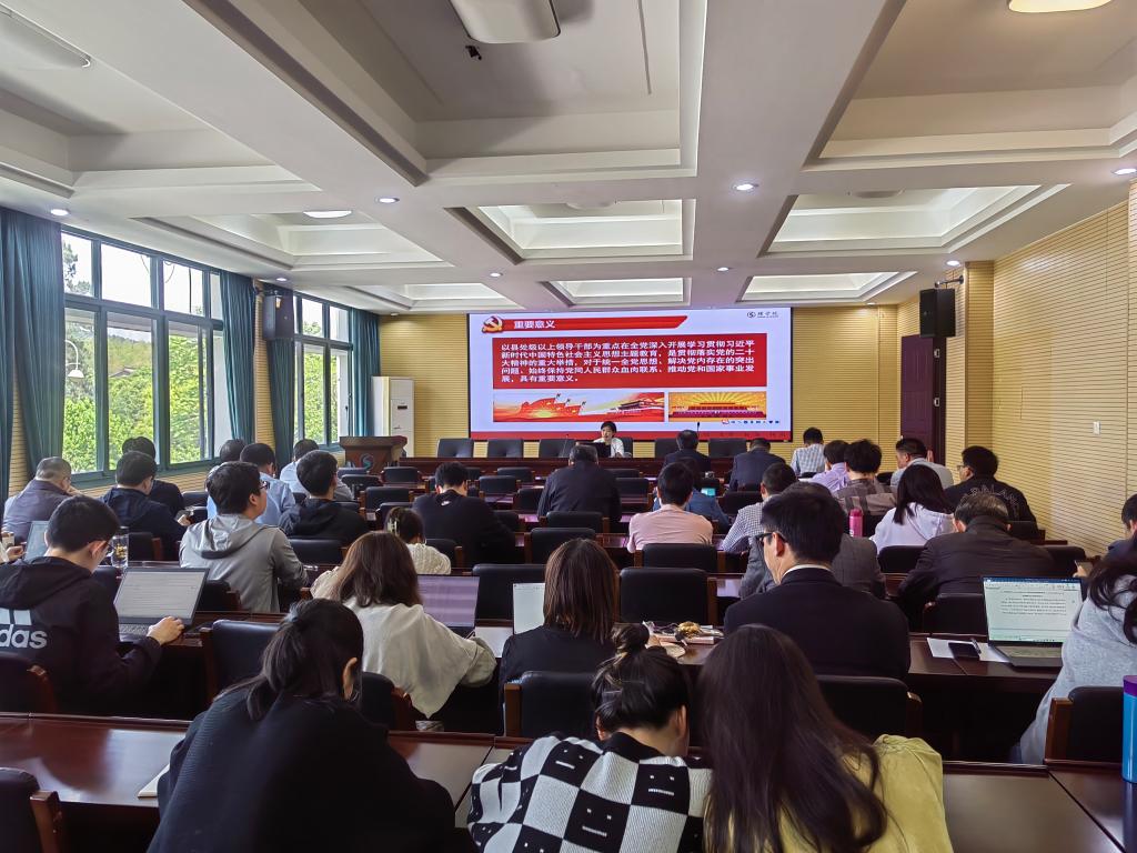 学院教职工政治理论学习会上,张掬婴带领全院教职工学习习近平总书记在中央政治局集体学习、主题教育工作会议上和广东考察时关于主题教育相关的一系列重要讲话精神。她指出,习近平总书记系列重要讲话内涵丰富,具有很强的政治性、思想性和指导性,为全党高质量开展主题教育提供科学指引和根本遵循。张掬婴就如何开展主题教育作详细说明和部署。