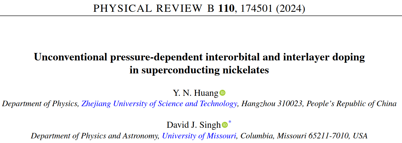 应用物理系量子关联物质研究团队在国际学术期刊《Physical Review B》 (IF=3.71,中科院二区) 期刊上发表了题为" Unconventional pressure-dependent interorbital and interlayer doping in superconducting nickelates "的研究论文。浙江科技大学为第一单位,应用物理系副教授黄衣娜为第一作者,密苏里大学物理与天文学系David J. Singh教授为论文通讯作者,文章致谢了浙江大学物加拿大28