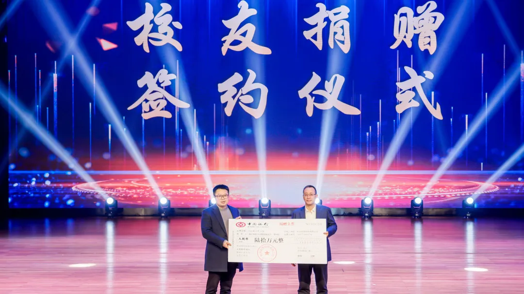 应用物理04级校友来到晚会现场,进行校友签约捐赠仪式。